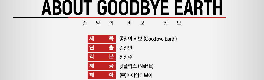 <Á¾¸»ÀÇ ¹Ùº¸>´Â Á¾¸» ÀÌÈÄÀÇ »çȸ»óÀ» ±×·Á³½ ¿©Å¸ÀÇ µð½ºÅäÇÇ¾Æ À帣¹°°ú ´Þ¸® ¿¹Á¤µÈ Á¾¸»À» ¾ÕµÐ »çȸÀÇ Ç³°æÀ» ´ã´Â´Ù. ³ª»ç(NASA)°¡ ¼ÒÇ༺ÀÌ Áö±¸¸¦ ÇâÇØ Á¢±ÙÇϰí ÀÖÀ¸¸ç, 280ÀÏ ÈÄ Ãæµ¹ÇÒ °ÍÀ̶ó°í ¹ßÇ¥ÇÑ´Ù. ±×¸®°í Çѹݵµ°¡ Á÷Á¢ÀûÀÎ Ãæµ¹ ÇÇÇØ Áö¿ª¿¡ Æ÷ÇԵȴÙ. ´ëÇѹα¹Àº ¼ø½Ä°£¿¡ È¥µ·¿¡ ÈÛ½ÎÀ̰í, »ç¶÷µéÀº ´ëÇѹα¹À» ¶°³ª ¾ÈÀüÇÑ °÷À¸·Î ÇǽÅÇϱâ À§ÇØ ¾È°£ÈûÀ» ¾´´Ù. ¼ÒÇ༺ Ãæµ¹À̶ó´Â ´ëÀç¾Ó ¾Õ¿¡¼ ³²°ÜÁø ÀÚµéÀº ¾î¶² ¼±Åðú »îÀÇ ÀÌÀ¯¸¦ ã¾Æ°¥±î. ÅÍÀüÀÇ Á¾¸»À» ¾ÕµÐ »ç¶÷µéÀÇ ½É¸® ¹¦»ç¿Í »çȸ Çö»óÀ» ¸®¾óÇÏ°Ô ±×·Á³»¸ç ´Ù¸¥ ½Ã°¢ÀÇ Áö±¸ Á¾¸» À̾߱⸦ ´ãÀº <Á¾¸»ÀÇ ¹Ùº¸>´Â <Àΰ£¼ö¾÷>, <¸¶ÀÌ ³×ÀÓ>ÀÇ ±èÁø¹Î °¨µ¶ÀÌ ¿¬ÃâÀ» ¸Ã¾Æ ³ÝÇø¯½º¿Í ¼¼ ¹øÂ° È£ÈíÀ» ¸ÂÃá´Ù. ¿ì¸® »çȸÀÇ ºñ¶Ô¾îÁø ´Ü¸éÀ» ¹Ù¶óº¸´Â ±íÀÌ ÀÖ´Â ½Ã°¢À» º¸¿©ÁØ <Àΰ£¼ö¾÷>°ú °·ÄÇÑ ¾×¼Ç ´©¾Æ¸£ÀÇ Á¤¼ö¸¦ ¼±º¸ÀÎ <¸¶ÀÌ ³×ÀÓ>±îÁö ´Ù¾çÇÑ À帣¿¡¼ ¼¶¼¼ÇÏ°í ³ë·ÃÇÑ ¿¬Ãâ ³»°øÀ» °ú½ÃÇß´ø ±èÁø¹Î °¨µ¶ÀÌ ±×·Á³¾ µð½ºÅäÇÇ¾Æ ¼¼°è°ü¿¡ ±â´ë°¡ ¸ðÀδÙ. <Á¾¸»ÀÇ ¹Ùº¸> °¢º»Àº µå¶ó¸¶ [¹Ðȸ]·Î ¼¾¼¼À̼ÇÀ» ºÒ·¯ÀÏÀ¸Ä×´ø Á¤¼ºÁÖ ÀÛ°¡°¡ ¸Ã¾Ò´Ù. [¾Æ³»ÀÇ ÀÚ°Ý], [¹Ðȸ], [dz¹®À¸·Î µé¾ú¼Ò] µî ¸Å ÀÛǰ Çö½Ç¿¡ ´ëÇÑ ½Å¶öÇÑ ¹¦»ç¿Í źźÇÑ ÇÊ·ÂÀ» ¼±º¸¿©¿Â º£Å×¶û ÀÛ°¡ Á¤¼ºÁÖ¿Í ±èÁø¹Î °¨µ¶ÀÇ Æ¯±Þ ¸¸³²À» ¼º»ç½ÃŲ <Á¾¸»ÀÇ ¹Ùº¸>´Â µå¶ó¸¶ [½ºÆÄÀÌ], [´Ù½Ã ¸¸³ ¼¼°è], [±× ³²ÀÚ ¿À¼ö] µîÀ» Á¦ÀÛÇÑ ¾ÆÀÌ¿¥Æ¼ºêÀÌ(IMTV)°¡ Á¦ÀÛÇÑ´Ù.
